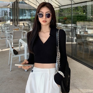 Áo Sơ Mi Tay Dài Cổ Polo Ngắn Nhiều Màu Đơn Giản Thời Trang Hàn Quốc