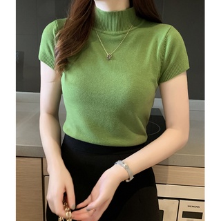 Áo Thun Dệt Kim Tay Ngắn Cổ Lọ Dáng Ôm Phong Cách Hàn Quốc Thời Trang Cho Nữ