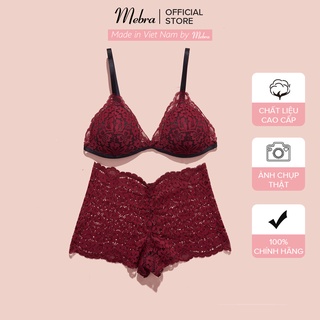 Set đồ lót bralette nữ ren hoa đỏ đô quần đùi boxer không gọng mút mỏng thương hiệu Mebra A092