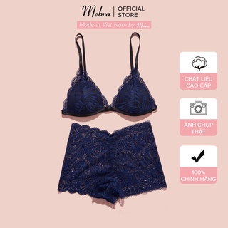 Set đồ lót ren hoa FLOWERS PREMIUM không gọng đệm mỏng quần boxer thương hiệu Mebra MB025