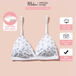Áo ngực bra nữ cotton kháng khuẩn không gọng không đệm tặng kèm mút mỏng trắng hoa xanh rời mát mẻ thoáng khí Mebra A001