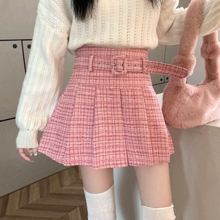 Xiaoxiang Chân Váy Chữ A Xếp Ly Màu Hồng Lưng Cao Dễ Phối Đồ Phong Cách Hàn Quốc Cho Nữ