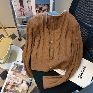 Áo Cardigan Dệt Kim Cổ Vuông Dáng Rộng Phong Cách Retro Dành Cho Nữ