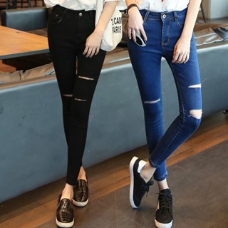 Quần Jean Lưng Cao Dáng Ôm Kiểu Rách Cá Tính Dễ Phối Đồ Cho Nữ