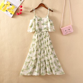 Đầm Đi Biển Mùa Hè Hai Dây Nhún Bèo Phong Cách Mới Cho Nữ