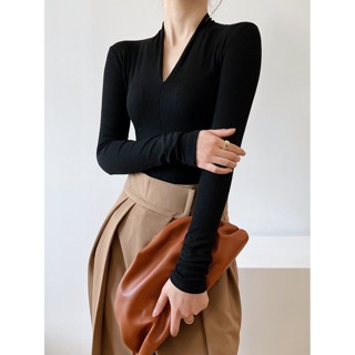 Áo Thun Nữ Dài Tay Cổ Chữ v Màu Trơn Phong Cách Mới