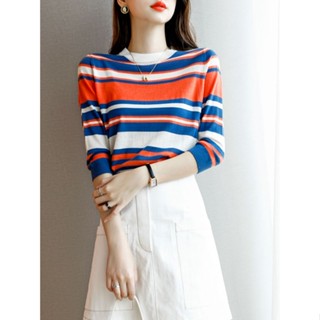 Áo Len Dáng Rộng Họa Tiết Kẻ Sọc Thời Trang Mùa Hè Dễ Phối Đồ Cho Nữ