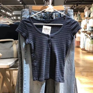 Áo Thun Nữ Ngắn Tay Cổ Chữ V Sọc Ngang Thời Trang Mới