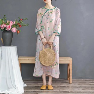 Đầm Sườn Xám Cách Tân Dáng Rộng In Họa Tiết Phong Cách Trung Hoa Cổ Điển Thời Trang Mùa Hè Cho Nữ