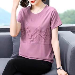 Áo Thun Cotton Ngắn Tay Cổ Tròn Thêu Họa Tiết Thời Trang Mùa Hè Cho Nữ