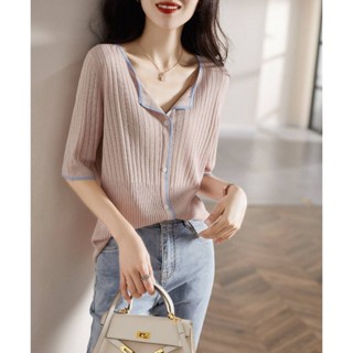 Áo Cardigan Dệt Kim Tay Ngắn Phong Cách Mới