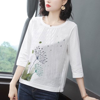 Áo Thun 100% Cotton Tay Dài Thêu Họa Tiết Dân Tộc Phong Cách Retro Plus Size Dành Cho Nữ