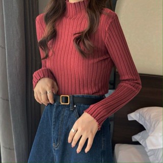 Áo Dệt Kim Tay Dài Cổ Lọ Dáng Ôm Kẻ Sọc Thời Trang Thu Đông Cho Nữ