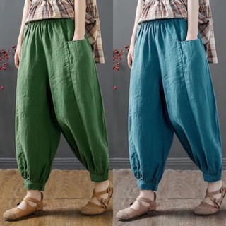 Quần Harem Cotton Lanh Dài Tới Mắt Cá Chân Phong Cách Retro Mùa Hè Kiểu Mới Dễ Phối Đồ Cho Nữ