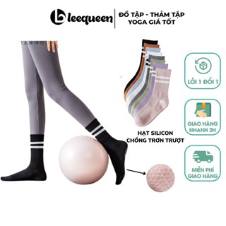 Tất / Vớ Chân Cao Cổ Nữ Freesize 35-41 Tập Yoga Pilates Len Co Giãn Đính Hạt Silicon Chống Trơn Trượt Mũi Tròn