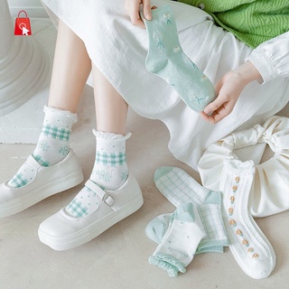 Vớ cotton Phối Ren Màu Trắng Phong Cách lolita Dễ Thương Thời Trang Cho Nữ JP1