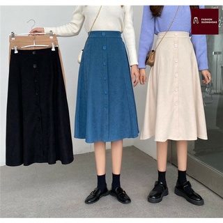 Chân Váy Chữ A Nhung Tăm Cạp Cao 3 cúc mẫu mới sang trọng đẹp m908