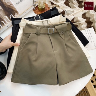Quần short đùi nữ có đai cạp cao chất liệu tuyết mưa 555