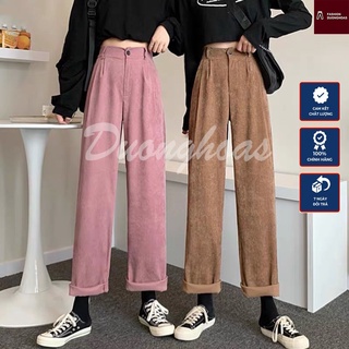 Quần Ống Rộng Nhung Tăm Nữ Cạp Khóa Form Dáng Đẹp Ấm 86