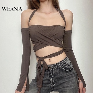 Áo Thun Crop Top Cổ Chữ U Khoét Sâu Tay Dài Dáng Ôm Thời Trang Cho Bạn Gái 0505