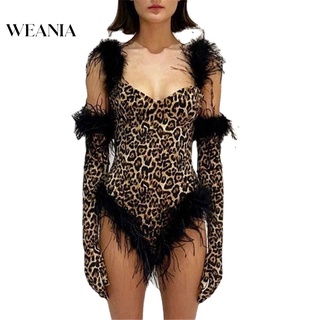Bộ Áo Liền Quần Hai Dây Họa Tiết Da Báo Quyến Rũ Kèm Găng Tay Dành Cho Nữ