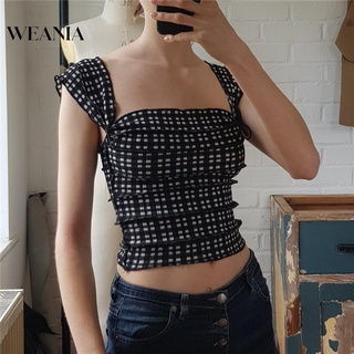 Áo tank top WEANIA hở lưng họa tiết sọc caro thời trang cho nữ