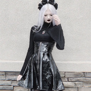 Đầm Da Pu Ôm Dáng Phối Khóa Kéo Quyến Rũ Cho Nữ