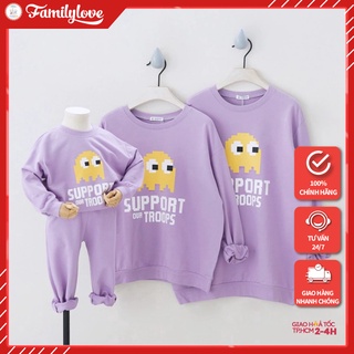 Áo Sweater Gia Đình Familylove - Mẫu Áo Gia Đình Sweater Dài Tay Support Our Troops Chất Nỉ Da Cá Cotton 100%