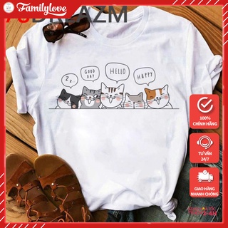 Áo Thun Phông Nam Nữ Form Rộng Familylove - Mẫu 6 Chú Mèo Good Day Happy
