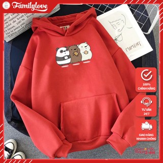 Áo Hoodie Nữ form rộng Cotton Nỉ da cá (Kèm hình thật chất áo có Logo Thương hiệu) 3 chú Gấu BEAR đang ăn