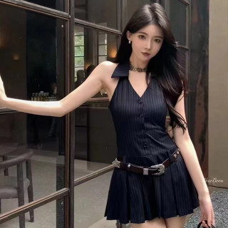 Set Áo Trễ Vai Không Tay + Chân Váy Lưng Cao Thời Trang Hàn Quốc Quyến Rũ Cho Nữ