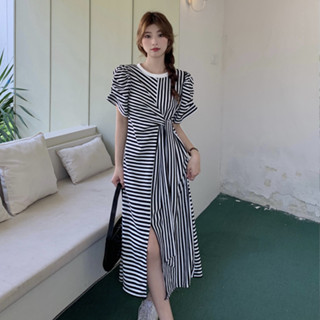 Đầm Tay Ngắn Cổ Tròn Màu Sắc Tương Phản Thời Trang Mùa Hè Hàn Quốc Dành Cho Nữ