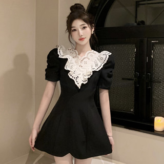 Đầm Đen Dáng Chữ A Cổ V Phối Ren Phong Cách Hàn Quốc Thời Trang Cho Nữ