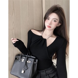Áo Thun Tay Dài Hở Vai Ôm Dáng Màu Trơn Phong Cách Hàn Quốc Thời Trang Quyến Rũ Cho Nữ