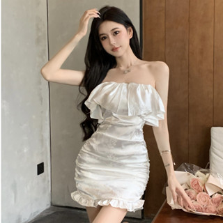 Đầm Hai Dây Ôm Dáng Eo Ngắn Màu Trắng Phong Cách Hàn Quốc Gợi Cảm Dành Cho Nữ
