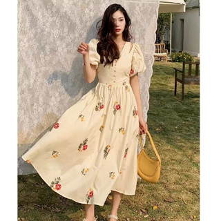 Đầm Dài Qua Gối Cổ Chữ V Ôm Dáng In Họa Tiết Phong Cách Bohemian Hàn Quốc Thời Trang Cho Nữ