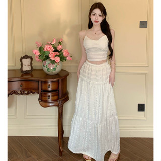 Bộ Áo Hai Dây Ngắn Ôm Dáng + Chân Váy Lưng Cao Co Giãn Thời Trang Hàn Quốc Cho Nữ