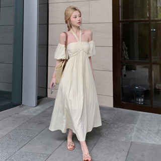 Đầm Dài Cổ Yếm Dáng Ôm Phong Cách Hàn Quốc Màu Sắc Đơn Giản Dành Cho Nữ