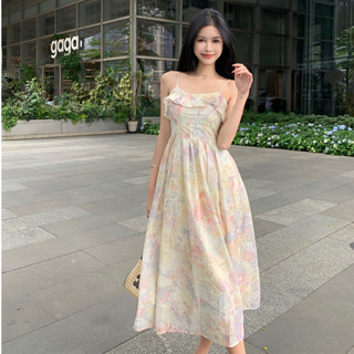 Đầm Voan Hai Dây Dáng Ôm Họa Tiết Hoa Phong Cách Bohemian Hàn Quốc Thời Trang Đi Biển Cho Nữ