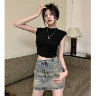 Set Áo Thun Ngắn Tay Cổ Tròn + Chân Váy Jeans Lưng Cao Thời Trang Nữ