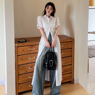 Đầm Dài Ôm Dáng Eo Vừa Vặn Có Dây Rút Gợi Cảm Màu Trắng Phong Cách Hàn Quốc Cho Nữ
