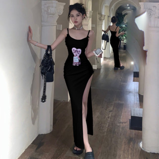 Đầm Dài Hai Dây Dáng Ôm In Hoạt Hình Phong Cách Hàn Quốc Dành Cho Nữ