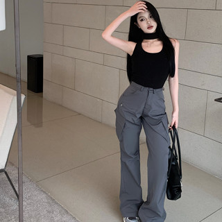 Bộ Áo Sát Nách Cổ Tròn Ôm Dáng + Quần Dài Eo Cao Ống Đứng Thời Trang Hàn Quốc Cho Nữ