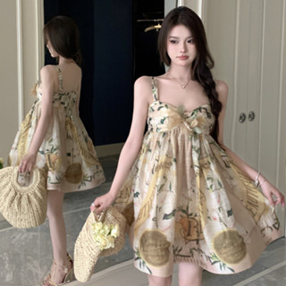 Đầm Hai Dây Ôm Dáng In Họa Tiết Mực In Phong Cách Hàn Quốc Cổ Điển Quyến Rũ Dành Cho Nữ