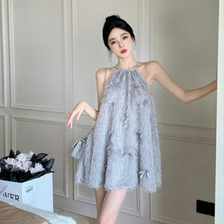 Đầm Cổ Yếm Dáng Rộng Thiết Kế Tua Rua Đính Nơ Phong Cách Hàn Quốc Thời Trang Cao Cấp Quyến Rũ Cho Nữ @ A @