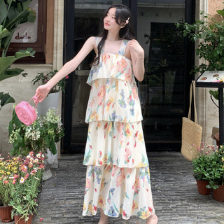 Đầm Dài Hai Dây Dáng Ôm Họa Tiết Hoa Phong Cách Hàn Quốc Thời Trang Quyến Rũ Cho Nữ