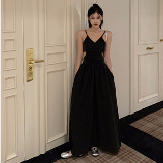 Đầm Hai Dây Dáng Chữ A Màu Đen Phong Cách Hàn Quốc Thời Trang Quyến Rũ Cho Nữ