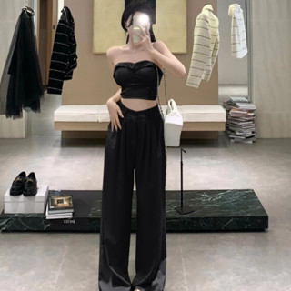 Set Áo Ống Lửng Và Quần Dài Lưng Cao Ống Rộng Phong Cách Hàn Quốc Quyến Rũ Dành Cho Nữ