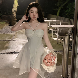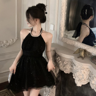 Đầm Cổ Yếm Đính Đá Phong Cách Hàn Quốc Quyến Rũ Dành Cho Nữ
