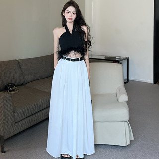 Bộ Áo Hai Dây Dệt Kim + Chân Váy Chữ A Lưng Cao Màu Trắng Thời Trang Quyến Rũ Cho Nữ